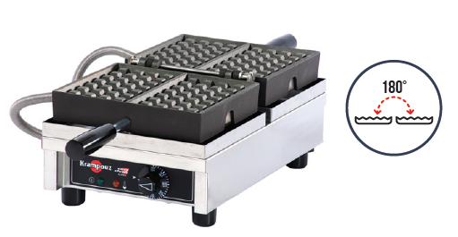• Confort d’utilisation : équipé d’un système de rotation complète très ergonomique qui facilite le retournement des gaufres. C’est l’appareil idéal pour une utilisation intensive et les gros débits.