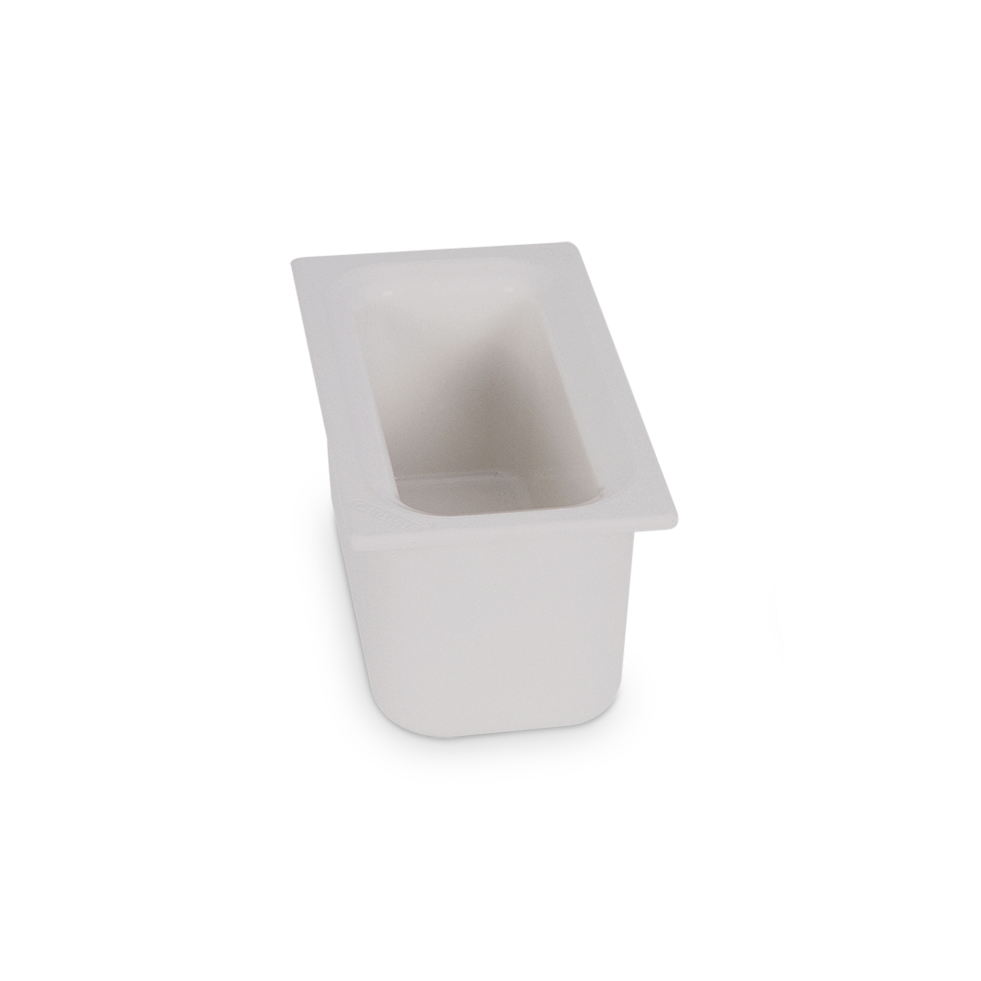 The eutectic container is a GN 1/3 Gastronorm tray that, after chilling in the refrigerator, will keep any liquid crepe or waffle batter fresh for 5 hours in the open air.