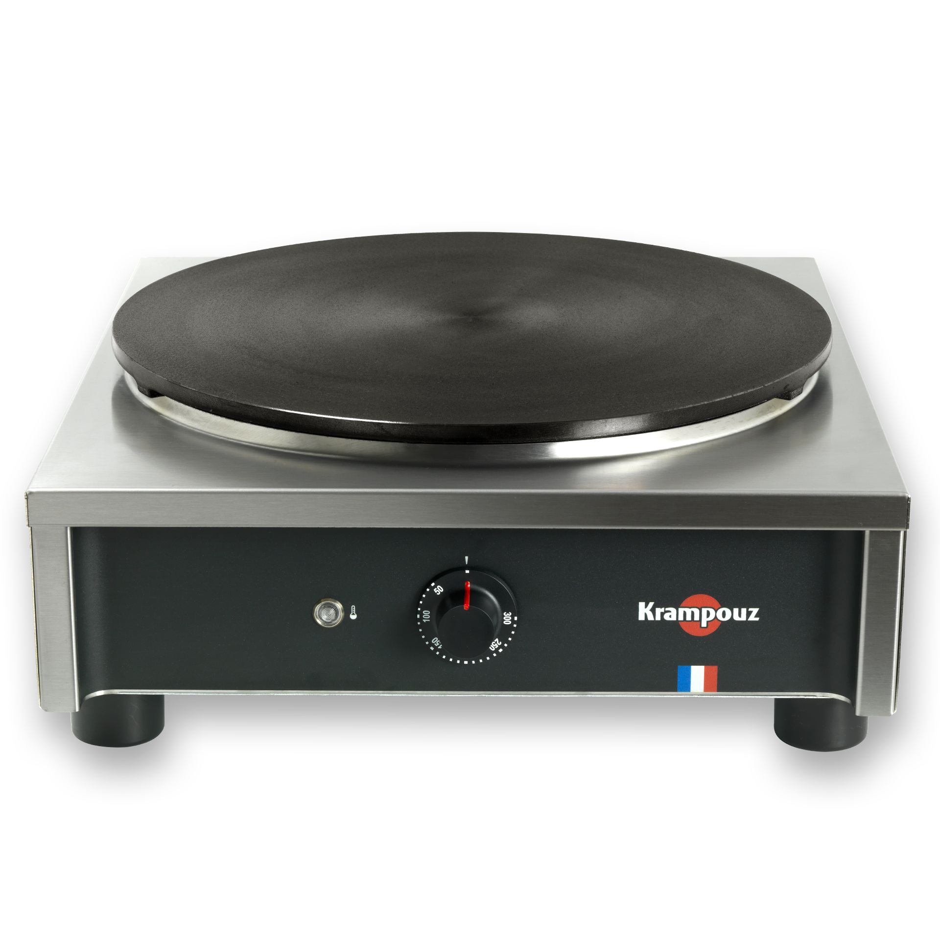 La crêpière professionnelle électrique Standard est conçue pour une utilisation occasionnelle. C’est l’appareil idéal pour la restauration non spécialisée en crêpes et les petites activités de snacking. La conception exclusive de la plaque, dans laquelle est insérée la résistance perlée, offre une grande précision et une homogénéité de chauffe.. La manette de contrôle, développée sur mesure pour être plus robuste et plus résistante à l’arrachement, est graduée de 50 à 300°C permettant un réglage précis de la température. Très résistante, la plaque en fonte brute usinée ne craint pas les chocs. Le châssis carré permet de limiter les coulures de pâte et les salissures sur le plan de travail.