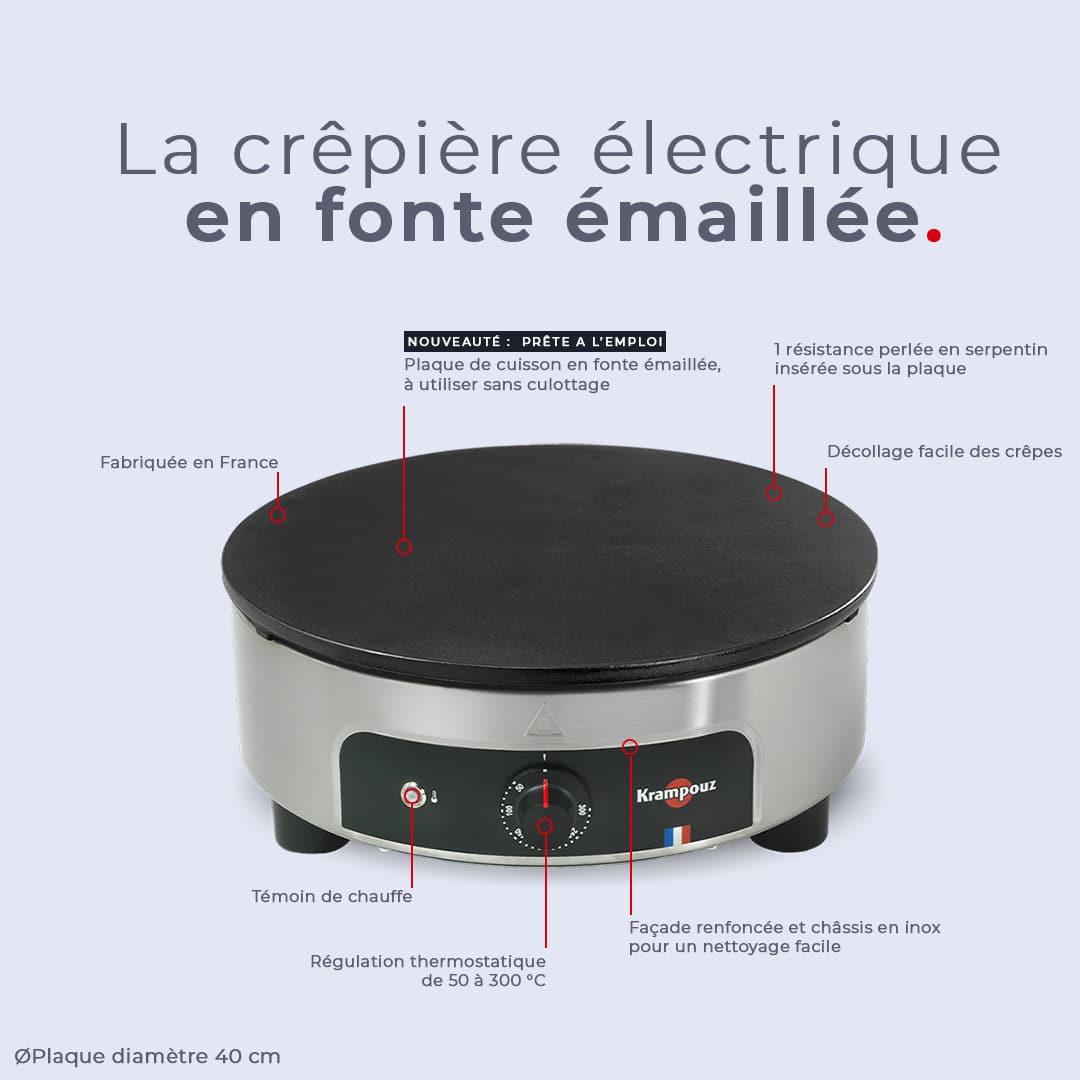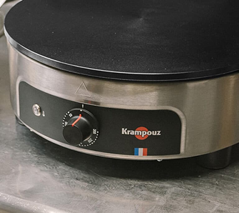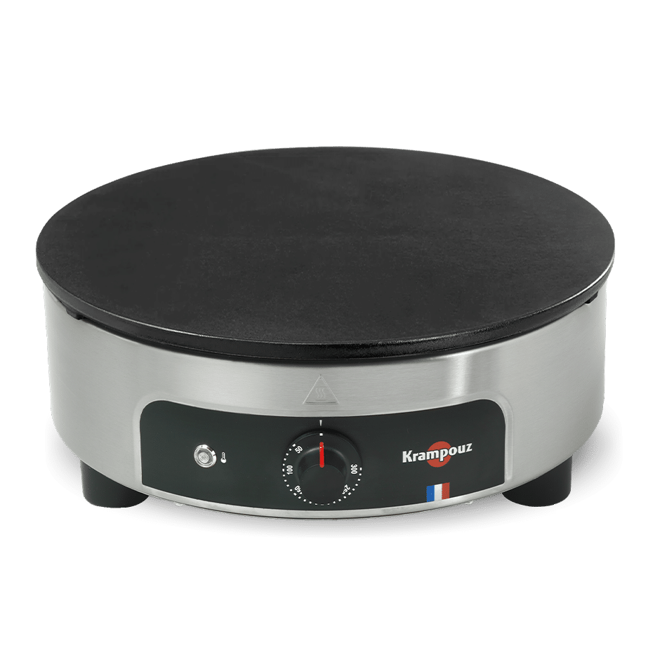 La crêpière Krampouz pour les professionnels, avec plaque en fonte émaillée, pour une utilisation sans culottage.