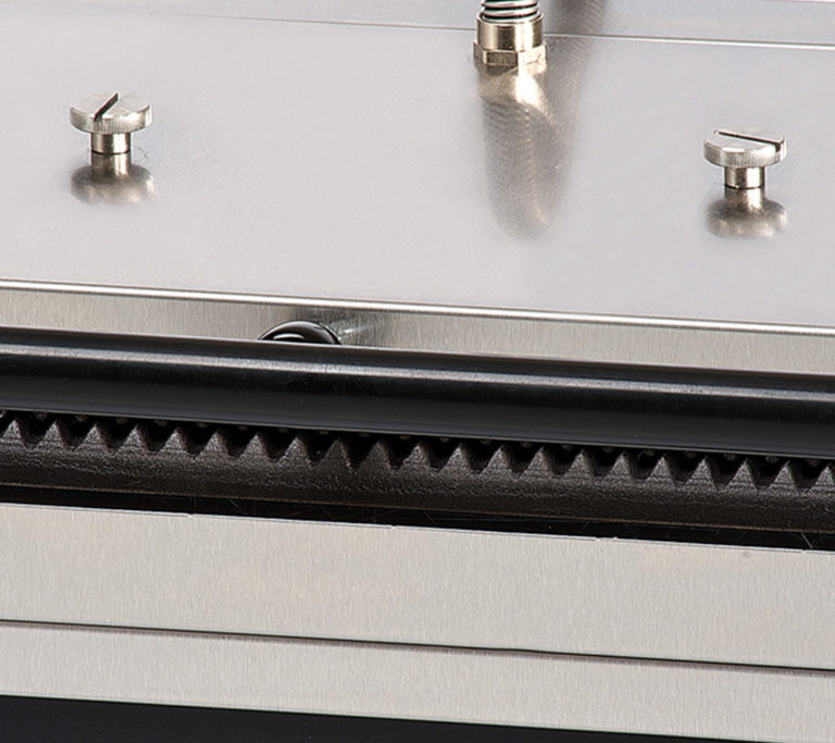 Bac de récupération des résidus de cuisson à l'avant de l'appareil, avec niveau de remplissage visible en un coup d'œil.