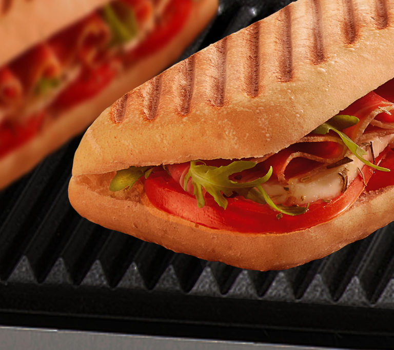 Deux utilisations possibles : en presse à panini en rabattant la plaque supérieure ou en plaque à snacker pour saisir vos préparations et vos pains.