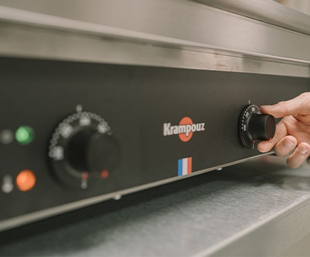 Bénéficiant d'une conception unique, les planchas Krampouz combinent une plaque de cuisson 100% inox à une plaque conductrice de chaleur pour assurer une excellente répartition de la chauffe et réactivité aux changements de température. La promesse d'une cuisson haute précision grâce aux deux thermostats réglables.