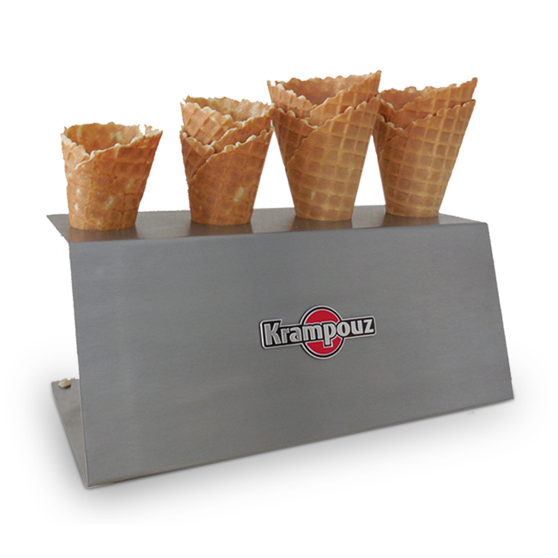 Ce porte-cornets en inox est idéal pour la présentation des cornets sur le comptoir et pour le maintien des cornets fraîchement réalisés.