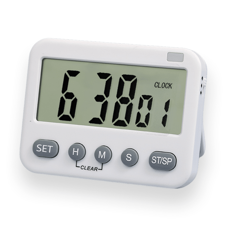 Avec son grand affichage digital et ses 3 fonctions (Horloge, Compte à rebours et Alarme), ce Timer à piles est idéal pour vous aider à respecter des temps de cuisson précis.